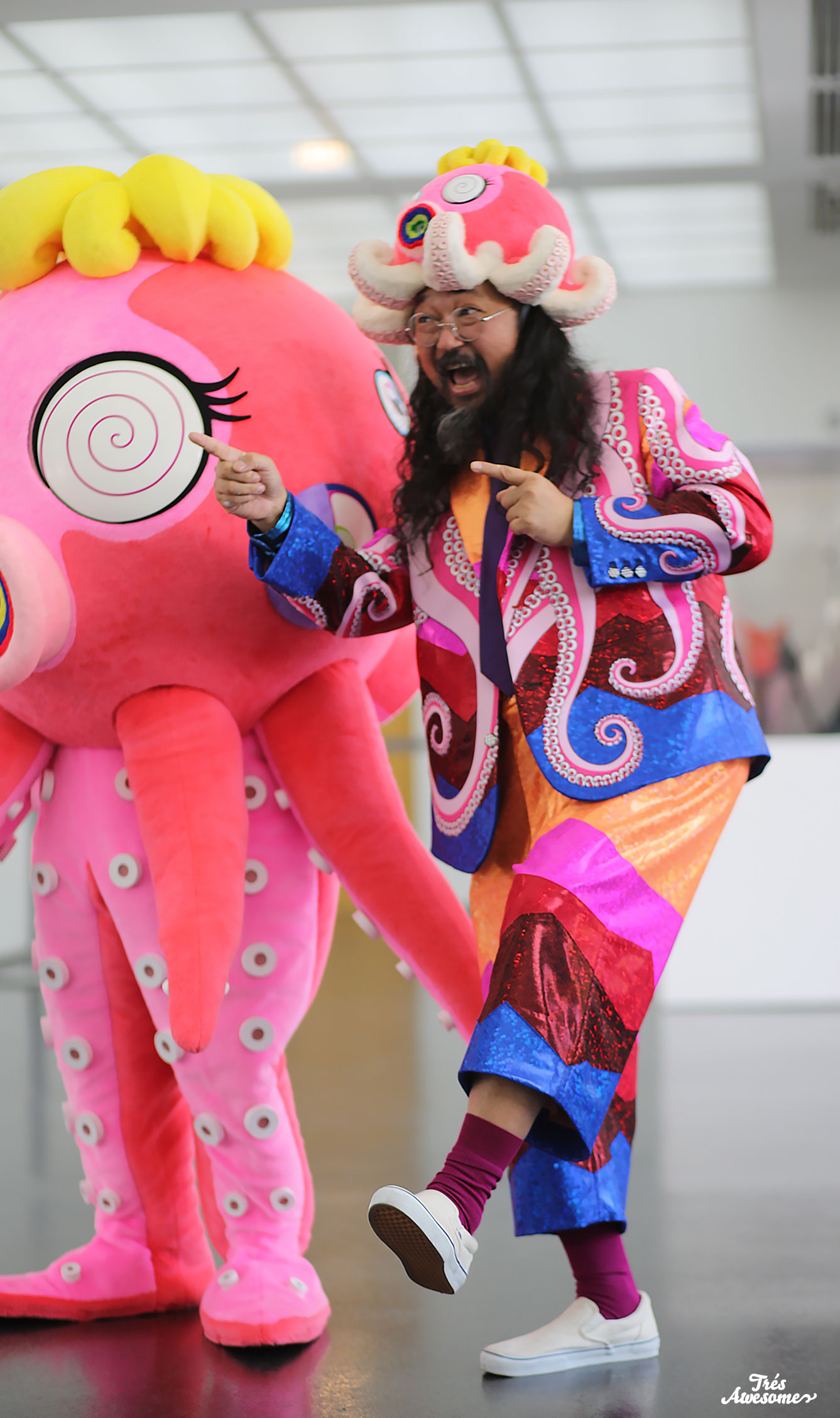 The master Murakami was on hand sporting an enchanting plush octopus hat, custom matching suit and of course he brought a long his wack-a-doodle friend the octopus.